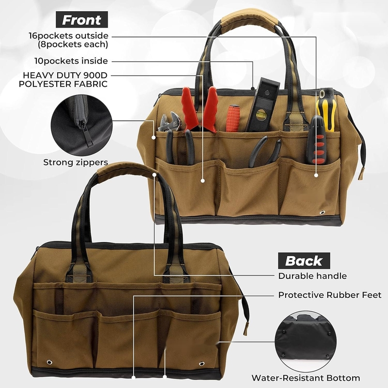 Покрытие из ПВУ в основании мешка для инструментов делает его водонепроницаемым и защищает внутренние предметы от влаги, ржавчины и воды.Это делает сумку с инструментами устойчивой к абразии.Он защищает предметы, помещенные в него.